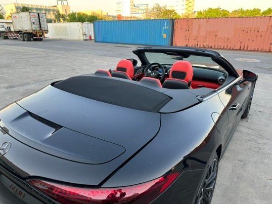 奔驰全新敞篷版跑车SL43 AMG现车配置功能包括主动式 LED 大灯、加热方向盘、多轮廓座椅(带按摩功能)、出色的 Burmester 环绕声音响系统、照明门槛、AMG 驱动单元方向盘按钮等。