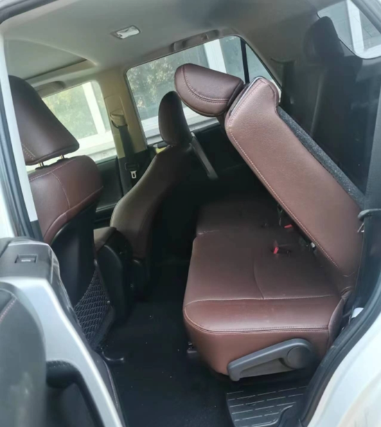 丰田超霸整体还是非常像普拉多的,中控面板采用了更多的银色镀铬设计,为了提升档次还在内饰加装了木纹饰板,中控整体为黑色,与座椅相互搭配。淡化了居家感,但更加运动,配色也更耐脏。整体中控的设计是丰田家族式设计,立式中控台以及合理的按键布局让车内控制系统更具便捷性。