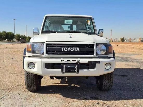 23款丰田酷路泽LC71 配置:70周年纪念标识、绞盘、熏黑大灯、16寸铝合金轮毂、真皮、倒影、真皮实木方向盘、熏黑轮眉、熏黑前后杠、车载气泵。