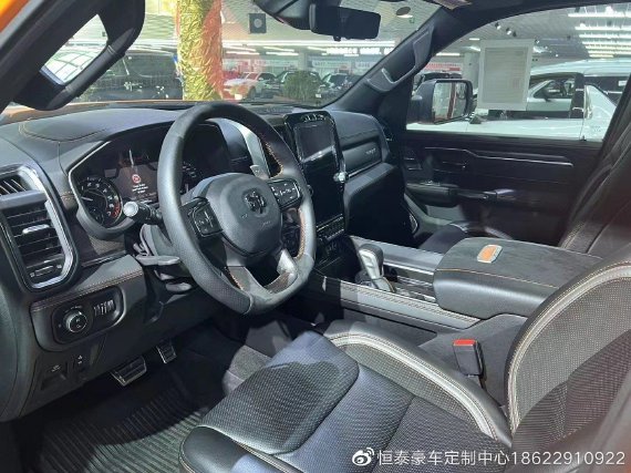 2023款道奇公羊霸王龙的座椅各自独立,配有加热通风等舒适功能,每个座椅独立配一个操控手柄,各项功能由乘坐者自己控制。道奇公羊霸王龙全部座椅均采用真皮包裹,前排还配备了十分实用的运动座椅。
