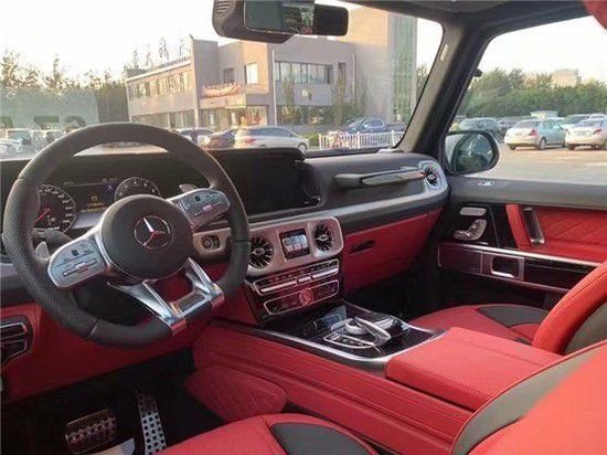23款奔驰G63 (配置|询价)采用了奔驰最新的双屏幕式设计,全液晶仪表盘和中控台屏幕都达到12.3英寸,同时内饰质感和工艺都有了很大的进步。中控涡扇式空调出风口也颇具设计感,车内的高档皮革内饰以及标有V12钻石图案设计的座椅、车门面板和脚垫,无不彰显着车主的尊贵身份。