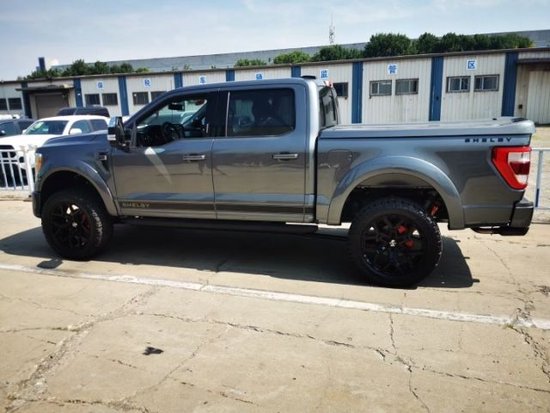 福特F150猛禽谢尔比并称其为有史以来最强大、最精致、最具竞争力的F150。该车基于F150 Lariat四驱版打造而来,外观改造非常具备侵略性,放弃了谢尔比经典蓝白配色,转而采用了视觉差异感更强的白黑色调,采用了冲压空气发动机罩、更具运动性的前保险杠,以及包裹在35英寸全地形轮胎中的22英寸合金车轮,新车还配备了与车身颜色相同的宽大轮眉,黑色侧踏以及谢尔比Logo前格栅。