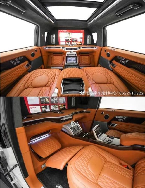 英皇路虎——皇家一号,外观方面,LED日间行车灯以及手工打造的不锈钢格栅、更宽的挡泥板、前保险杠、侧裙套件、以及重新设计的后保险杠等相关车身结构件。路虎皇家一号霸气的长方形蜂窝镀铝金属进气格栅,犀利的两侧智能车头大灯,以及上方帅气的“RANGE ROVER”英文字样,都尽显揽胜 (配置|询价)路虎皇家一号不凡气派和高端商务品位。硬朗绅士,盛气凌人。