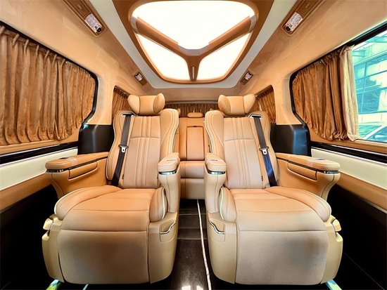 全车采用大量超纤真皮包覆,半隔断互联网电视,加上全车8声道的音箱,带来了很好的视听感受。地板采用大理石纹设计,美观大气,且易打理。中排的采用的是埃尔法 (配置|询价)同款的航空头等舱座椅,功能十分强大,通风,加热,按摩旋转等等应有尽有,这种埃尔法座椅的尺寸比之普通的航空座椅也要宽一点,舒适度更高,坐起来更舒适。