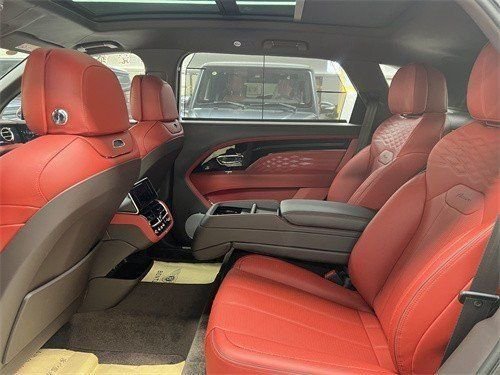 23款宾利添越长轴版内饰上又进行了升级,门板上流光菱形格搭配了灯光效果,座椅上的徽章刺绣,以及后排独立的五变四座椅,整车科技配置完全升级,后排的关门方式追寻了劳斯莱斯的关门方式,精致之余又增添了更实用功能。