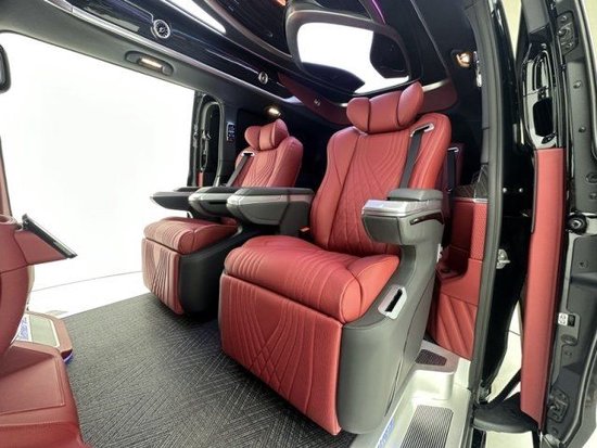 进口奔驰V250 7座商务车后舱前为两个独立航空座椅。中央的首长席座椅多功多样,包括多向电动调节、腿托、通风加热按摩,无线充电等。此款航空座椅经过国家3C认证并配备液晶智能触控调节屏幕,安全舒适。上面的缝线也相当细腻,首长席均配有可折叠桌板,后排除了正常容纳三名乘客非常宽松的乘坐之外,还能将其完全放平。