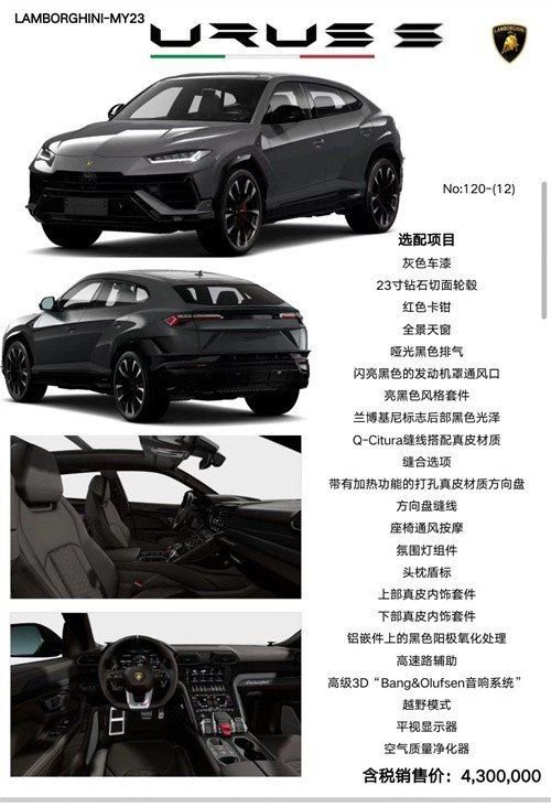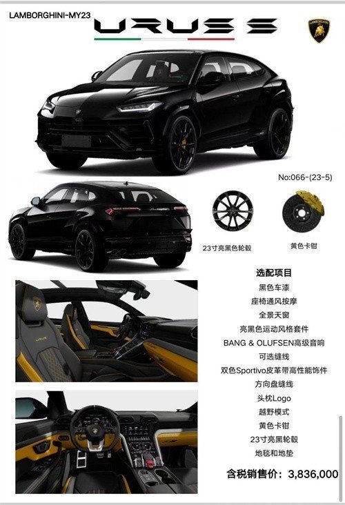 新款兰博基尼URUS (配置|询价)的内饰是意大利的尊贵工艺与尖端技术的完美融合,它非凡的设计理念和以驾驶者为中心的贴心设计,均通过三重TFT显示屏得以体现,现车将驾驶者的需求放在了首位,所有所需按键都分布在驾驶位的旁边,并使驾驭者更加愉悦、充满享受感。车内座椅通过对天然皮革、木材、铝或碳等不同材质和不同颜色的选配,可按照消费者的需求为车辆内饰提供更为优雅或更具活力的环境。