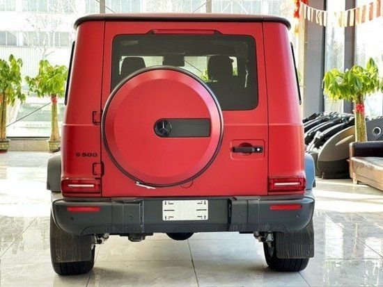22款奔驰G500 (配置|询价)颜色全 配置:熏黑外观套件(20寸熏黑轮毂,大灯,轮眉,前后杠,倒车镜,门把手,备胎罩,字标等熏黑装饰),三区空调,鹿皮顶,红色安全带,菱形格黑棕双拼座椅,柏林之声音响,前后座椅通风加热,纳帕仪表台,天窗,64色氛围灯,360环影,脚垫,后挡泥板,座椅按摩,雷达测距