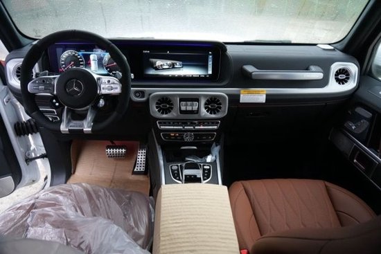 奔驰G63内饰方面,奔驰的设计绝对可以用惊艳来形容,无论是经典车型还是超豪华车型甚至是入门级的豪华车上,奔驰的内饰都会让你眼前一亮,当然了这也是奔驰的一个特色。更多咨询请致电:任经理 15620227760 (电话同微信)所以这部全新的G63在内饰的表现上也是情理之中的,但是细节上还是有些小小的意外。这种感觉是打开车门的瞬间就能够感受到的。首先仪表和中控屏依旧是采用了同一款液晶屏显示,第一感觉就是科技感爆表。而其他方面例如方向盘,空调出风口,挡杆等等的设计充满设计感。