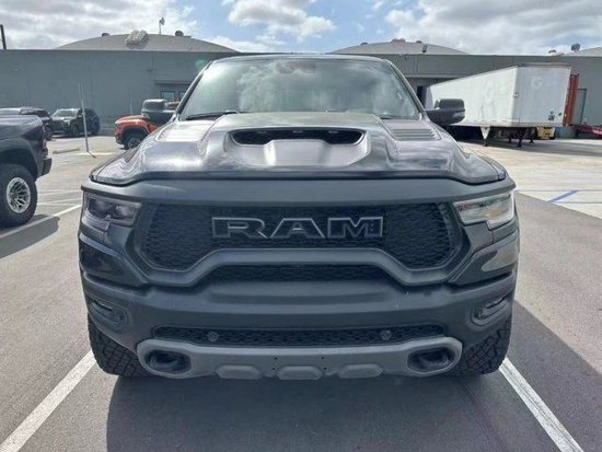 23款道奇公羊1500 6.2TRX霸王龙外观方面,新车传承了道奇RAM 家族高大威猛的造型设计,同时细节部分融入了更多高性能元素,包括经过黑化处理的前格栅,引擎盖两侧的黑色进气口以及为了容纳巨大的机械增压器而设计的通风口等等。