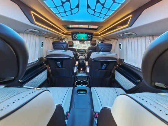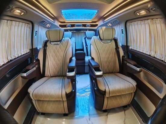 全新23款奔驰V260L外观变化不大,前脸是后期我们升级成了迈巴赫套件,换装的轮毂式样也更加激进,全车的隐私玻璃时标准商务车的配置。主副驾驶以及侧门都做了软包隔音处理,整个奔驰V260L商务车的驾驶舱都采用奔驰新款轿车的设计风格,豪华感浓郁,V260L全新的悬浮显示屏升级为触屏控制,驾驶舱视野开阔。