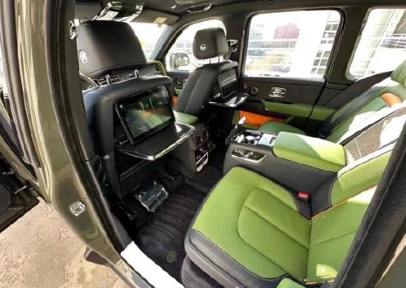 库里南 (配置|询价)Black Badge外观的变革还延续到各处细节中。车头、侧翼、后进气道处的双R标志变成了黑底银字。格栅边框、车窗边框、行李厢把手、行李厢下沿饰条、下进风口以及排气管等均变为黑色。全新22英寸铸造合金轮毂是专属的Black Badge风范。亮面抛光黑色喷漆看似常规,但衬托出了劳斯莱斯品牌史上第一款彩色刹车钳。