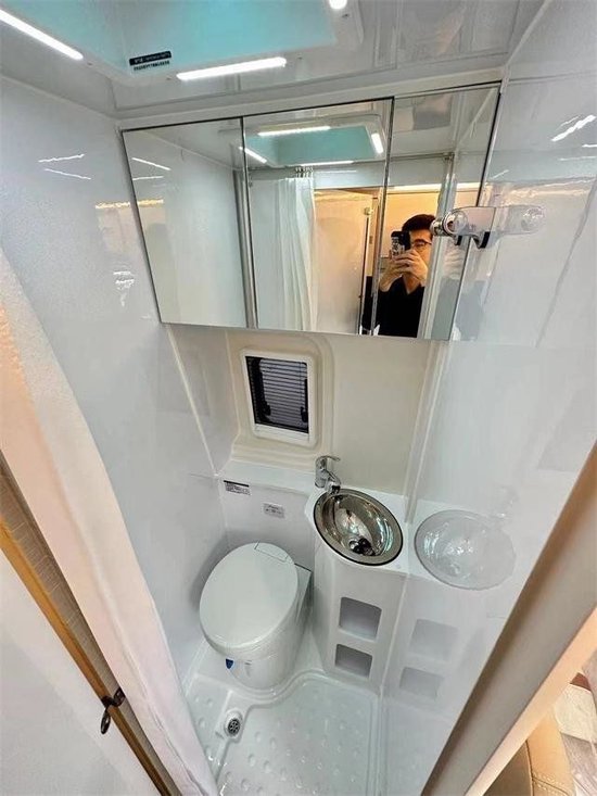 高亮度的全吸塑卫生间在如今已经不算是什么新鲜的工艺配置,但是瑞弗能在一些细节上下功夫,这是难能可贵的。比如卫生间底托为了便于渗水快速,由一个地漏增加至2个,分布在不同位置,即便将车停靠在不平整的位置,依然能够获得比较好的渗水效果。