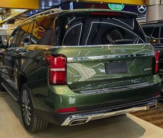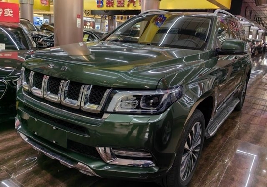 新款北京BJ90基本延续了旧款车型的造型设计,前脸的进气格栅依旧通过宽厚的镀铬装饰填充,形成五孔造型,底层则是采用黑色的网状结构包裹。两侧平行四边形样式的大灯组与进气格栅融为一体,灯腔内配备氙气远光灯光源,而L型LED日间行车灯则位于灯组顶部。