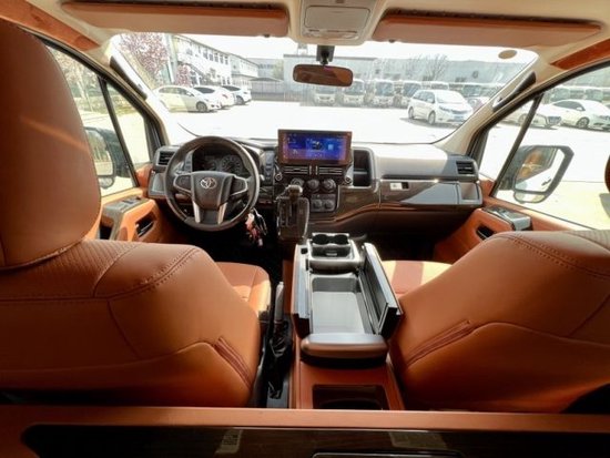 2023款款丰田海狮的航空座椅有着超乎寻常的尊贵感和舒适感,侧壁更换意大利顶级真皮包袱手感极佳,侧壁菱形格的设计使整车层次分明立体感更强。侧窗豪华电动窗帘,面料阻燃隔热、隔光、隔音。顶棚更换意大利顶级麂皮绒零污染零伤害的环保材质,搭配桃木件及氛围灯的组合,营造出温馨舒适的乘车环境。