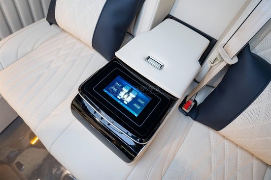 这款奔驰定制迈巴赫商务车还有24寸大顶娱乐屏,不仅实时显示周边环境与驾驶状态,搭载的互联网模式,还能在车内看看电影、听听歌、亦或是实时在线会议或者直播。