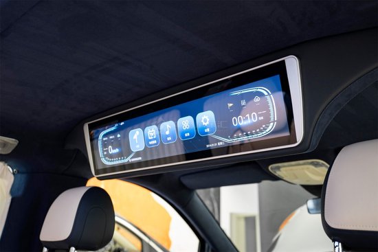 这款奔驰定制迈巴赫商务车还有24寸大顶娱乐屏,不仅实时显示周边环境与驾驶状态,搭载的互联网模式,还能在车内看看电影、听听歌、亦或是实时在线会议或者直播。