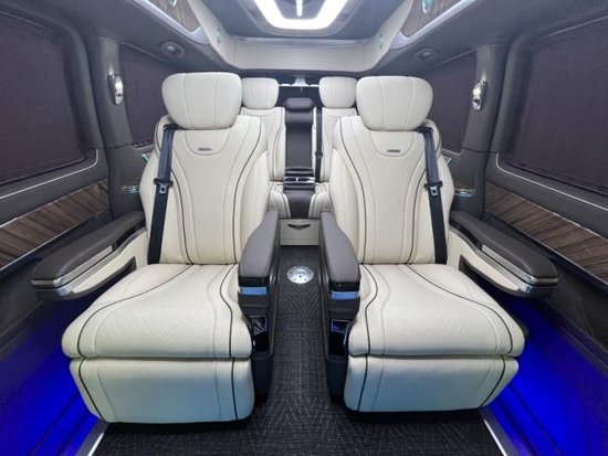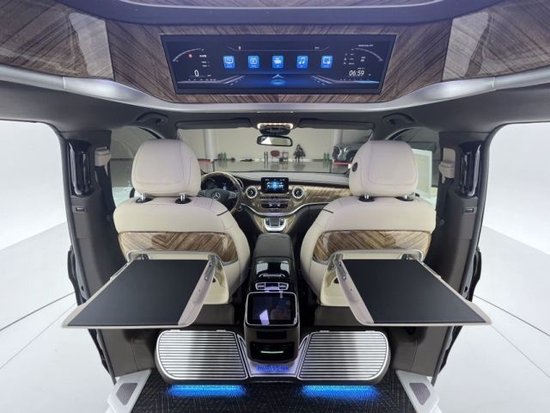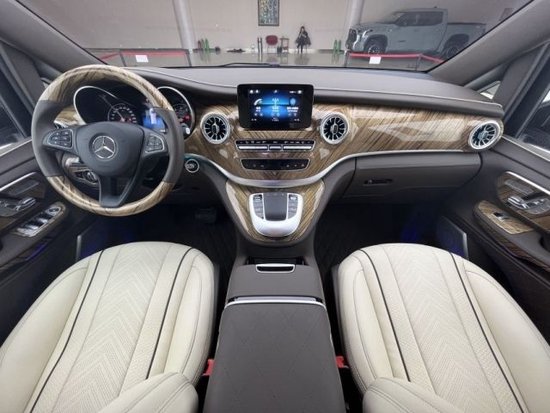 22款全新国六奔驰V250七座商务,整个车顶采用了定制的圆弧形顶灯三色可选。两侧的空调出风口全部选用了涡扇式的空调出风口,还带有出风口氛围灯设计,开启后整车的内饰风格立马不一样了360度座椅可旋转。