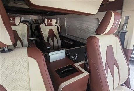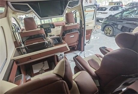 升级配置如下:外观:前后包围、LED 前大灯、铝合金锻造轮载(18寸+防爆胎)、防擦条、整车电镀贴 内饰:小隔断电视、车顶主灯、车内氛围灯、整车隔音/隔热、主副驾背板桌、电脑桌、热水壶、全车音响(哈曼卡顿11个杨声器+低音炮)、功放(阿尔派)、全车造型、全车包覆(Napa)、全车桃木、独立航空座椅(通风、加热、按摩、一级腿拖、无线充电)、后排沙发床、主副驾驶座椅改电动(主驾6项、副驾4项)、主副驾中央扶手冰箱、主副驾脚垫、后排座椅扶手冰箱、后排航椅触摸屏、电视顶灯控制屏、防窥玻璃膜、三门铝踏板、印花蜂窝铝地板、手动窗帘、涡轮出风口 电子电器:中控一体机(360环影)、电动中门、C 柱壁灯、鼓风机、逆变器、整车线速、鼓风机风口、空气净化器、无线充电。