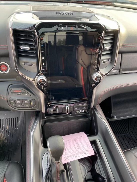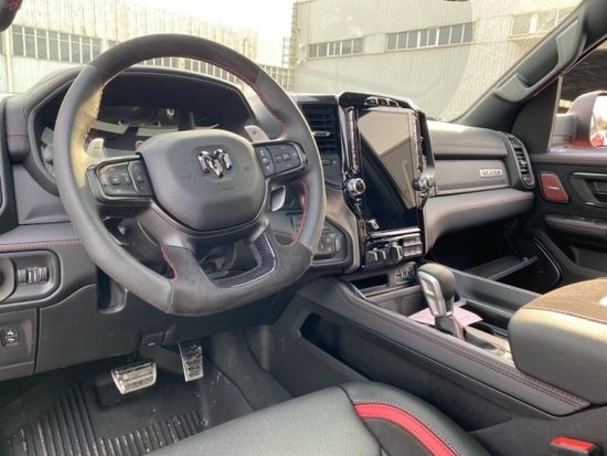 道奇公羊霸王龙在内部设计上还是延续了美式那种比较粗犷的风格,规整的中控台设计看上去比较死板,但丰富的配置会让你不由得为其称赞,中控台的设计简洁硬派, 符合公羊的气质,仪表盘底边有花纹,则更加凸显了这款车的文雅性,软性材质的仪表台设计,摸上去手感非常舒服,并无些许生硬之处。