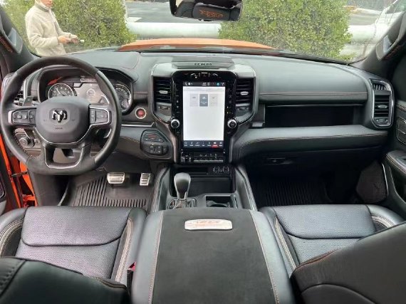 2023款道奇公羊霸王龙在内饰部分进一步强化了其高性能版本的形象,中控台和座椅随处可见的TRX标识便是最好的例证。