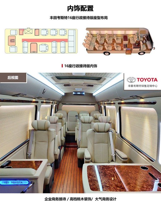 丰田考斯特 (配置|询价)15座企业接待车升级内饰价格,丰田考斯特 ( 参数 | 询价 | 图片 ) 上世纪 留下来的传统吧其次它的空间大,在商务中巴车型中价格比较昂贵,比较符合尊贵身份,北京中鼎厂家可以根据需求进行办公内饰或者娱乐内饰改装可以方便进行会议和办公。是一款由丰田汽车公司所出产的中型华通丰业商务接待中巴车,中鼎考斯特商务车一般为政企业的接待用车和考察用车,品牌认知度相当的高。 北京丰田考斯特改装厂京津冀最大考斯特改装4S店现车充足,全国销售=