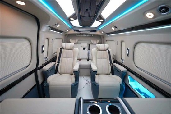 丰田海狮商务车改装定制高端商务风。侧壁更换意大利顶级真皮,手感舒适且使整车层次分明立体感更强;电动窗帘具有阻燃、隔热、隔光、隔音的优点。豪华顶灯设计,设计感十足又光线温和舒适;地板采用实木铺设,高端大气环保又易打理。