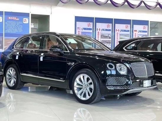宾利添越 (配置|询价)油混3.0 黑/棕 21轮,百年纪念规格包、前座椅舒适包、保险杠与车身同色-标准车漆范围、矩阵格栅和保险杠下部镀铬、宾利前后增厚脚垫、脚感电尾、钢琴漆内饰、氛围灯