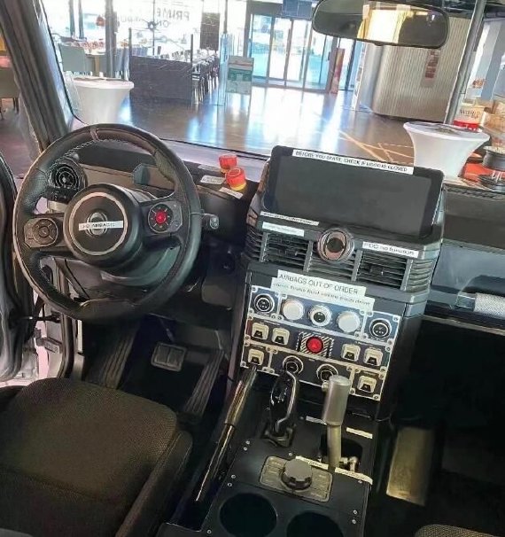 内饰方面取消了仪表盘,配备12.3英寸中控大屏,下方为空调出风口,而且车内保留了大量的实体按键,两幅式多功能方向盘造型时尚,新车采用五座布局,座椅由织物和皮质拼接设计,整个内饰主要以实用为主,这也符合整车硬派越野的定位。