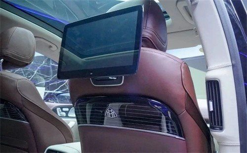 MBUX后排座椅娱乐系统,在前排的椅背上放置了两块液晶屏幕,不仅可以用来调节座椅,还可以调节车内的一些设置,包括影音系统、独立空调、触控平板、遮阳帘、冰箱、恒温杯托、香槟高脚杯的储物箱、以及氛围灯和其他等功能,足够的贴心。。。