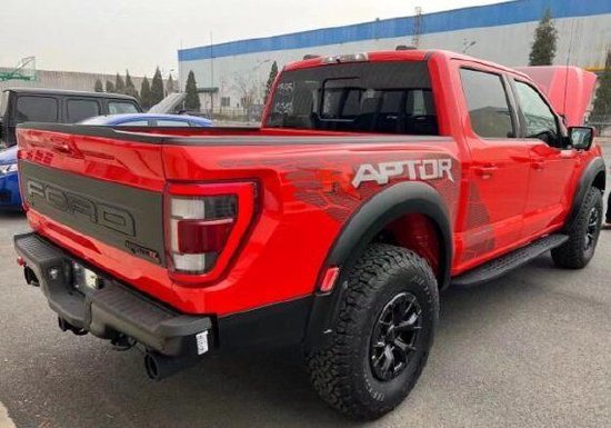 外观方面,从实际的效果来看,新车改变的也仅仅是性能配备,外观造型基本上和福特猛禽F-150一样,整体没有大的变化,细节方面稍有区别。具体来看,前脸是大家熟悉的网状格栅,熏黑处理,中间的字母展示了新车的身份,灯组造型犀利,格栅上方有三个小灯组,亮起后辨识度很高,底部护杠比较突出,两侧均配备了红色拖车钩。