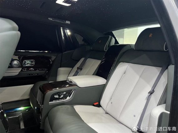 幻影车内,车窗玻璃一侧依旧设计了按键,长按就可以自动关闭车门。它的内饰设计与普通版车型明显不同,星空顶上面增加了一些刺绣工艺,坐进车内后仿佛置身于银河中,车门内侧同样也是星空,这也是这款车型的专属。