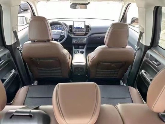 福特烈马车内采用硬朗的设计风格,中控台设计主次分明且有层次感,用料也厚实,多功能方向盘造型运动,中控屏幕采用内嵌式的设计增添了车内的时尚感,按键布局合理,档把设计精致,座椅宽大厚实,空间宽敞,实用性强。