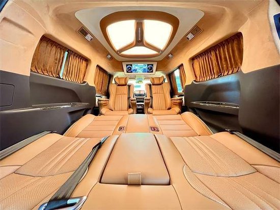 车内顶部为采用的是麂皮绒的软包加上星盾天幕顶灯,除了这些基本的功能性以外,整车在看不到的地方,比如四周全部做了隔音的处理,窗户上都加装的是高级私密窗帘,既可以避免阳光的直接照射,维护车内的一个用车环境,也可以很好的保护我们车主的隐私。