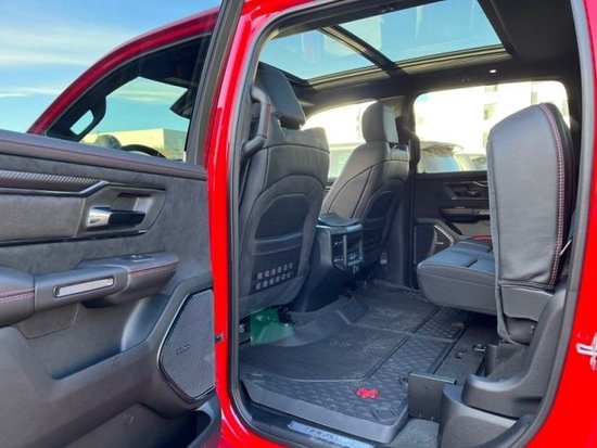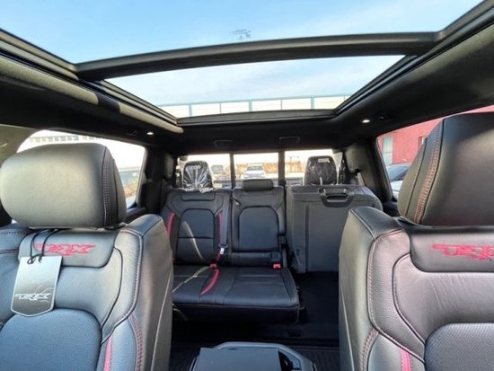 道奇公羊霸王龙在内饰部分进一步强化了其高性能版本的形象,中控台和座椅随处可见的TRX标识便是最好的例证。同时,作为道奇家族的旗舰车型,新车还配备了12英寸竖置中控屏幕,除了支持蓝牙、导航和车载Wi-Fi等常见功能,还支持Apple CarPlay和Android Auto手机映射。