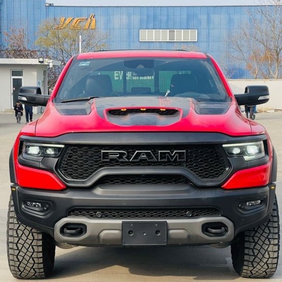 23款道奇霸王龙继承了Ram家族高大威猛的造型设计,同时细节部分融入了更多高性能元素,包括经过黑化处理的前格栅,引擎盖两侧的黑色进气口,以及为了容纳巨大的机械增压器而设计的通风口等等。此外,新车还配备了视觉冲击力更强的黑色轮眉和外露式的拖车钩,看上去十分霸气