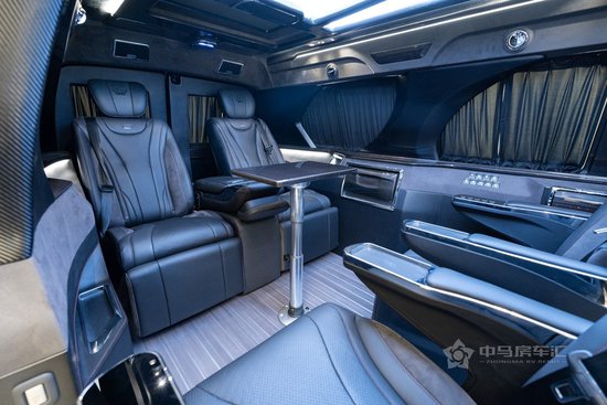 二排可一键式电动旋转,与三排形成对座聊天的会客厅模式,还配备了碳纤维升降商务茶桌,不管是商务洽谈,还是家庭聊天娱乐,都能成就旅途中一段美好的时光。