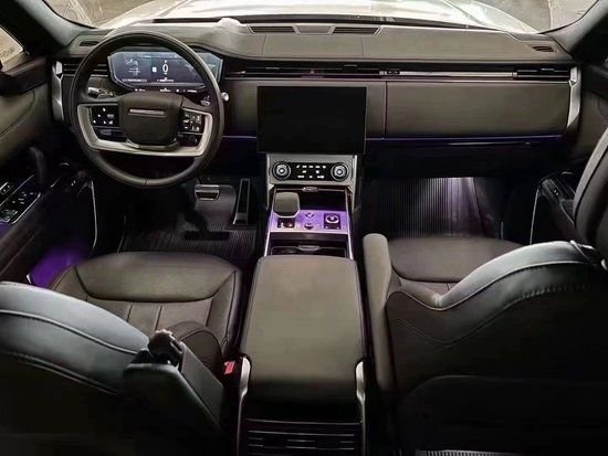 23款路虎揽胜大量真皮包裹,配合沉稳的造型很好的凸显豪华SUV的属性。路虎揽胜行政加长版配有双液晶显示屏、无限多媒体控制器、英国之宝音响等奢华配置应有尽有。采用四辐多功能方向盘,驾驶过程中能更好的操控,中控台两侧控制按钮改为触摸式,全新升级导航系统简洁易用。