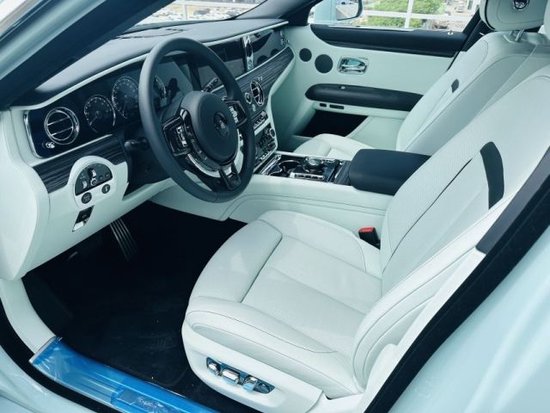 劳斯莱斯古思特沉稳自信的内部沿袭了劳斯莱斯的典型设计。复古式三幅大直径方向盘采用了正圆形设计,外部包裹的小牛皮材质触感也非常细腻。车内不论按钮、旋钮或是轮盘,极佳触感回馈伴有着并非清脆的响声,而是静谧无声。劳斯莱斯古斯特后排扶手上的金属装饰,看起来非常精致,储物袋是可以打开的,里面很适合放一些文件,就连前排扶手背面也有皮质包裹,摸起来触感不错,非常细致。木质的小桌板和内饰很搭,看起来非常有质感。后排乘客还可以通过后排娱乐系统来查看调节内容,功能比较强大。