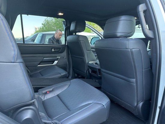 23款丰田红杉内饰的实用性与空间利用率在这代红杉身上均得到提升,坐进车内,第一感受就是大,前排的两个大尺寸的真皮座椅,自带打孔透气皮料,四幅式多功能方向盘,握在手里的质感不错,转向也没有想象那么重,T型的中控平台,尺寸方面也比一般车型大不少,14英寸的中控触摸屏,集成了几乎所有的影音娱乐以及车身控制功能。