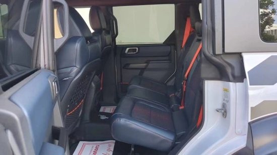 23款福特烈马Bronco3.0T四门Raptor猛禽设计兼顾了功能和奢华,座椅由优质皮革饰边材料制成,可加热和冷却,以提供最大的舒适度,仪表板配备一个大型高分辨率触摸屏显示器,作为卡车信息娱乐系统的中心,该系统包括AppleCarPlay和AndroidAuto兼容性等功能,以及内置导航系统,Raptor还拥有高品质音响系统和360度摄像头系统,以增加视野。