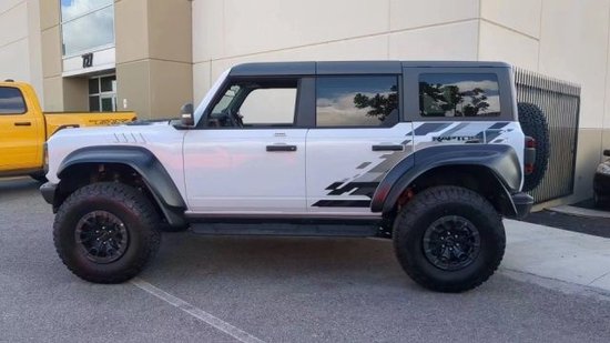 23款福特烈马Bronco3.0T四门Raptor猛禽,这是一款高性能专业沙漠越野车,非常适合时下热门的冲沙玩法,拥有HOSS越野自动稳定悬挂技术等。运用了更多专业技术,从沙漠高速越野的BAJA赛车演化而来。底盘方面需要强化,以增加扭转刚度,使用了一体式的高强度钢架来加固车身,B 柱横杆和 C 柱加强件让整体的抗扭强度比标准烈马提高了50%。减震塔顶采用新设计,防止高速起跳后避震冲击力损坏塔顶,钢制的防滑板贯穿车底,从前保险杠到发动机后部,也覆盖了变速箱和分动箱,可以有效保护车底,防止越野时碎石撞击底盘或者剐蹭。