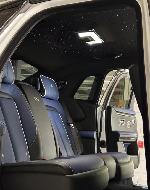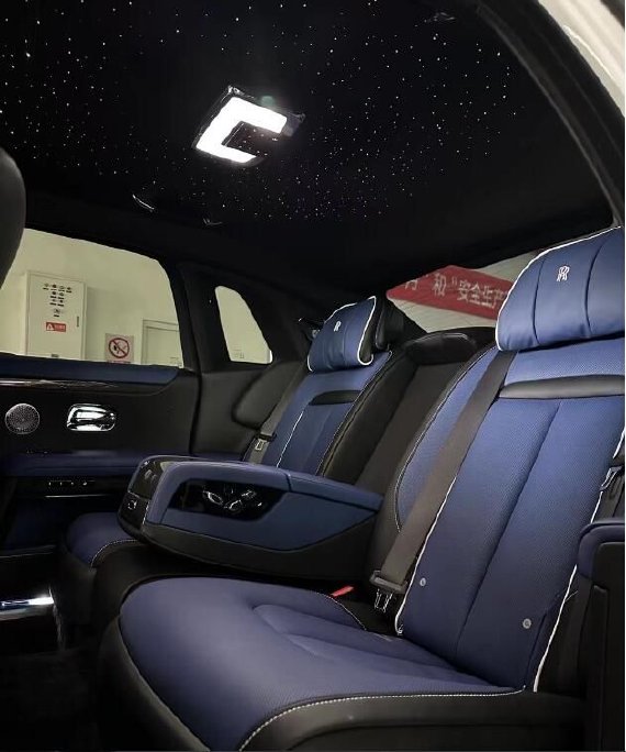 2024款劳斯莱斯古思特Black Badge内饰方面,特殊编织的碳纤维饰板出现在了全新古思特Black Badge的各处面板上,这也是Black Badge车型标志性的特征之一。中控台前方,以850颗星星构成的星光饰板依旧十分吸睛,而不同的是新车增加了可发光的“∞”无限符号,而相同的符号也能在座椅、门板等多处位置,代表着“无限黑暗”。