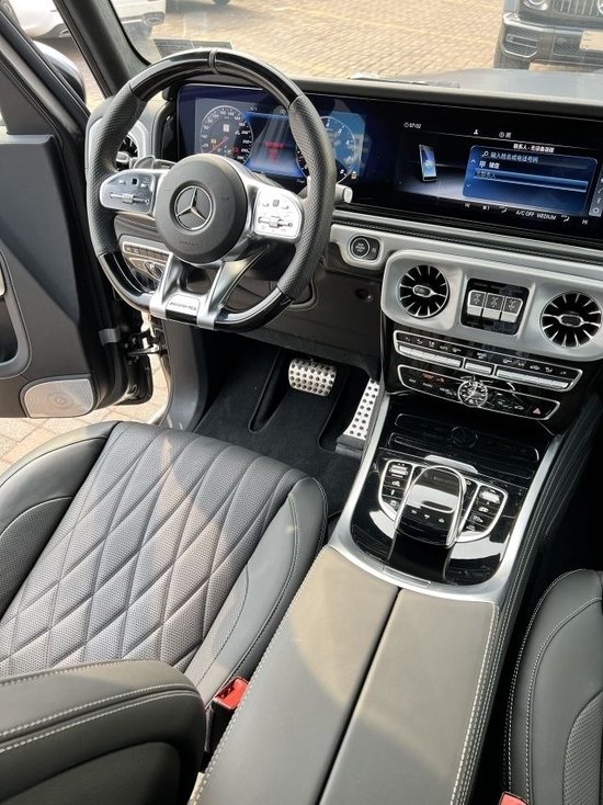 21款奔驰G63档次、质感和科技配置都明显提升,内饰相比老款有了明显的提升,采用了奔驰最新的双屏幕式设计,全液晶仪表盘和中控台屏幕都达到12.3英寸,更多咨询请致电:任经理 15620227760 (电话同微信)同时内饰质感和工艺都有了很大的进步。中控涡扇式空调出风口也颇具设计感,车内的高档皮革内饰以及标有V12钻石图案设计的座椅、车门面板和脚垫,无不彰显着车主的尊贵身份。