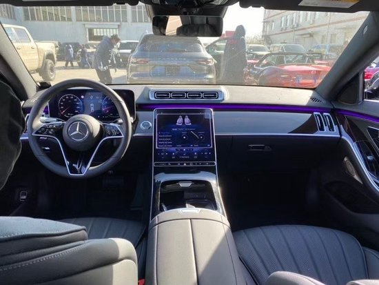 2023款美规奔驰S500 (配置|询价)内饰设计方面,奔驰S500都不能用豪华来形容,简直就是奢华总统小套房,销售经理:张女士 18502224231 微信同步中控部分搭载了双屏设计,12.8英寸的中控大屏以及12.3英寸的悬浮式行车电脑屏和HUD投影显示,配上棕色的内饰设计以及高亮的钢琴烤漆面板,将科技感与时尚感完美融合在一起。