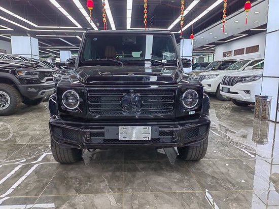23款奔驰G (配置|询价)400D外观方面它和奔驰G500的设计基本无异,亮黑色的方盒子造型粗犷硬派,因为这款车配有暗夜包,它前脸的三肋格栅、两侧的圆形大灯和前杠都进行了熏黑处理,格栅中间实心的三叉星车标搭载了主动安全的雷测,同时前脸还搭载了360环影的摄像头。光源方面,它采用的是几何多光束的LED大灯照明效果绝对出色。