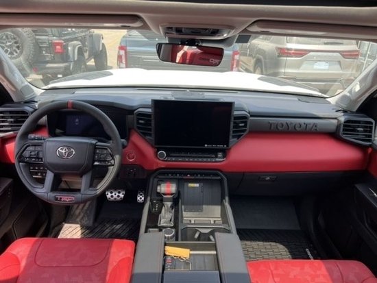 越野坦途中的天花板配置原厂升高 TRO越野减震,独立前悬架,5连杆式后悬架,后差速锁,BBS轮,扭矩690,437马力12JBL音响蠕行 DAC下行辅助控制 后差速锁后窗隐私玻璃 前档风玻璃隔音,电动后窗除霜器独立前悬架 5连杆式后悬架,TRO越野减震,TRD PRO前稳定杆 原厂升高电动调节方向盘 加热皮革方向盘 TRD加热转向轮双区空调,前座椅通风加热座椅电动调节 腰部支撑 主驾驶座椅记忆车内后视镜防炫目外后视镜电动折叠 加热 记忆镜像LED大灯 日间行车灯 雾灯,熏黑头灯,外部琥珀标记灯 TOTOTA格栅TRD前格栅 TRD防滑板 TRD PRO冲压尾门 引擎盖徽章 侧仪表徽章双排气 18寸TRD PRO 黑色锻造BBS车轮