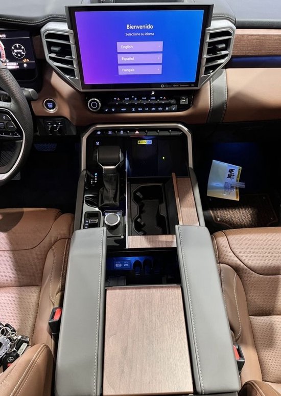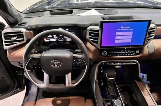 2022款丰田坦途采用悬浮式中控大屏设计,中控屏从低配版8英寸到顶配版的14英寸,并且还提供有12.3英寸的全液晶仪表盘可供选择,支持CarPlay和 Android Auto系统。