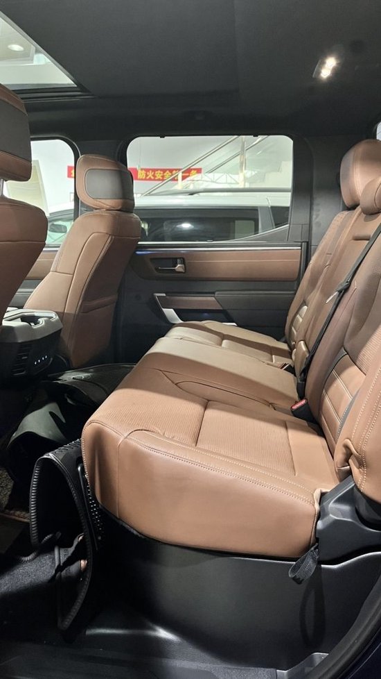 22款丰田坦途1794版在内部设计上,座椅全部采用真皮制作,方向盘和档把为桃木制作坦途皮卡肌肉感的设计同样延续到内饰的设计中。