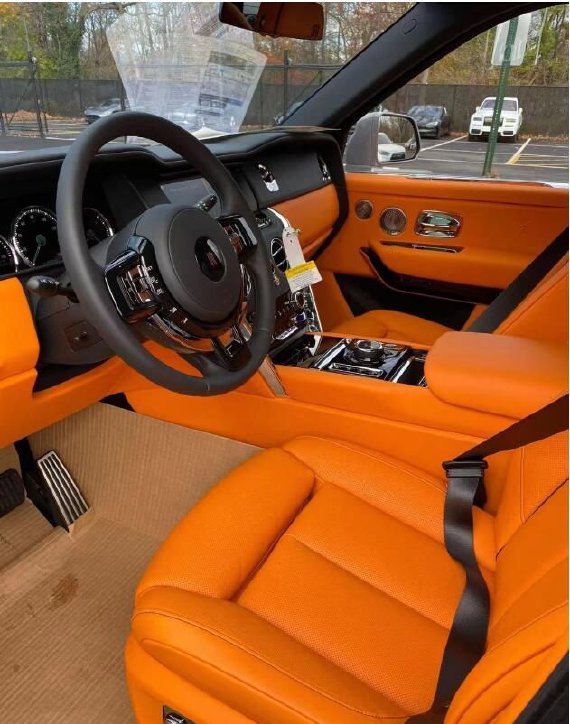 风暴灰外观/爱马仕橙内饰,羊毛地毯,劳斯莱斯RR字母浮雕头枕,野餐桌,橙色制动卡钳,自正式RR车标轮毂盖,22英寸7幅抛光轮毂,加热的乘客环绕 ,后舒适头枕垫,钢琴黑内饰,